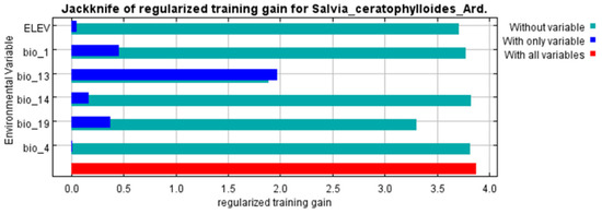 Relative predictive power of different environmental variables based on the jackknife of regularised training gain in MaxEnt models for Salvia ceratophylloides Ard.