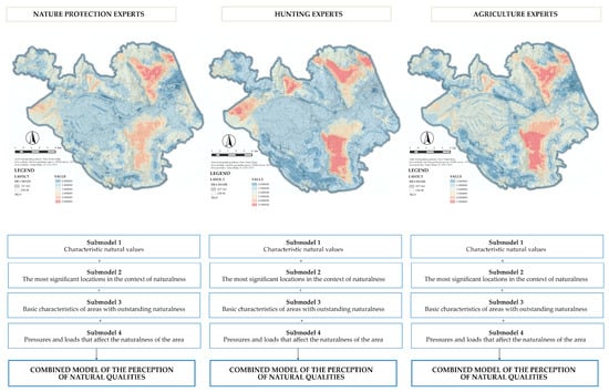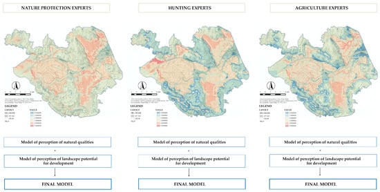 This research has shown that the attitudes and values obtained through the application of a low-structured interview can be compared with each other only by applying qualitative research techniques, while by applying the techniques of creating value models, they can only be cartographically displayed and implemented in the planning process. Combined models of perception of natural qualities and landscape potential for development are obtained by cumulative overlay (weighted linear sum obtained by applying fuzzy logic), and therefore the differences between experts in the field of nature protection, hunting and agriculture in cartographic value representations are not so prominent.