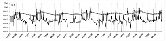 Figure 4 shows the overestimations of streamflow during low flow periods of the study years, whereas the calibration process performed well in most periods of peak flows when estimations fluctuated similarly with the respective observed values. This satisfactory calibration was most apparent for IS-2. A possible explanation of the overestimated baseflows may be provided by the long-term dry period (2002–2007) during which the simulations of water balance were unrealistic for low flow hydrological cycles. During dry and/or low flow seasons, aquifer recharge probably exceeded the proportion of interflow emerging as baseflow, resulting in overestimation of streamflow [16]. In a study in southeastern Victoria, Australia, SWAT was applied to a 1200-km2 catchment for modelling monthly streamflow [16]. These results showed that the groundwater variables did not perform properly and were greatly simplified, thus providing a poor representation of baseflow conditions. The SWAT model was also applied to a 300-km2 catchment in central Queensland, Australia to predict the impact of agricultural management on sediment load, resulting in an overestimated total flow [15]. Despite major differences in catchment areas, overestimates attributed to unreliable groundwater estimations appeared in each study.