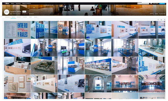 Through the exhibition, the TRAHERE project is present on the social networks of the Madrid City Council (CentroCentro), including Twitter (15,400 followers), Instagram (22,900 followers), and Flickr, where a complete photographic report of the room is available [21] (Figure 11).