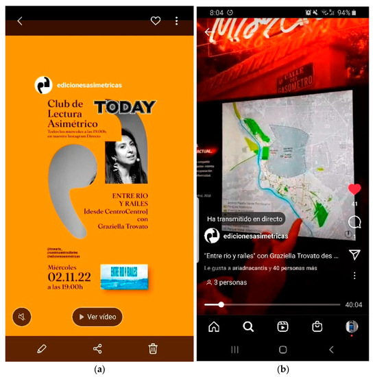 - Instagram Live—Guided Tour @edicionesasimetricas "Entre Río y Raíles" con Graziella Trovato desde @centrocentrocibeles. Available online: https://www.instagram.com/p/CkeCJ8XAGyo/?hl=es (accessed on 2 November 2022).