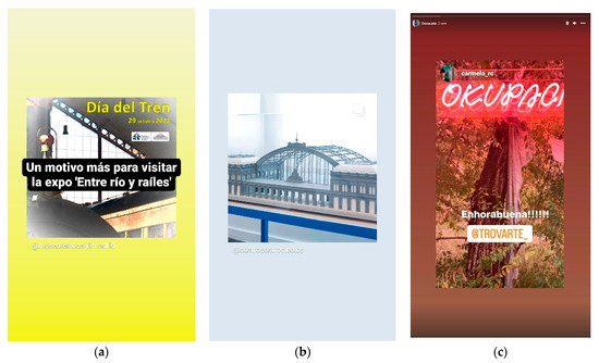 Presence of the research on Instagram through: (a) the profiles of the Railway Museum of the Spanish Railways Foundation (FFE); (b) the Madrid City Council; and (c) a citizen (the prominent architect and activist Carmelo Rodríguez, founder of Enorme Estudio).