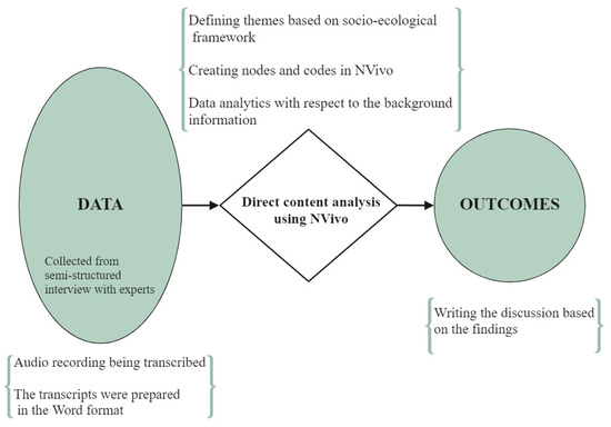 Directed content analysis was adopted as a method to develop the initial themes and codes using NVivo software version 12 plus (Figure 3). A direct approach to content analysis seeks to validate or extend conceptually a theoretical framework or theory. “It can provide predictions about the variables of interest or the relationships among variables, thus helping to determine the initial coding scheme or relationships between codes.” [51] (p. 1281). The analysis of interviewees’ responses to the open-ended questions (Table 2) and expectations that are in common among academics and experts aimed to identify the discourse on the ESS, the consideration of these ESS, and the challenges in planning and practice.