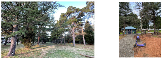 Haig Park in Canberra was established in 1921 and consists of exotic pine trees (such as Cedrus deodara and Pinus radiata). Right photo shows a part of the interventions to make it multifunctional by providing some amenities. Photos: F. Mofrad, 2022.