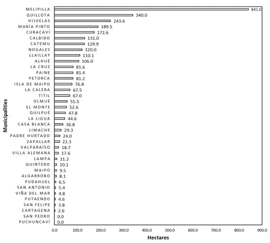 In total, 37 communes (territorial municipalities) were present in the study area, 10 of which had areas greater than 100 ha (Figure 7).