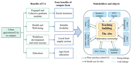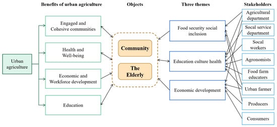 Thus, the authors attempted to build the bridge to push social networks, the people, agriculture, and the communities into a single entirety (Figure 2). In the beginning, farming was merely a way of production in space. Still, in the evolution of production, the aim of social networks in urban agriculture gradually began to serve the elderly and promote healthy aging. At this time, urban agriculture is four in one: city (also space, site), agriculture, nature, and people, building social networks is considered as an overall dream fostered by growing.