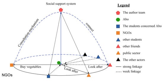 Firstly, a strategy based on space network. From the aspects of social network planning, we designed a human-oriented material space, with practical and complete use of urban gap space, we constructed an urban garden and protected the life value of the elderly. Secondly, the strategy based on social networks. From the aspects of social space planning, we produced the roof garden, communicated with the organization’s welfare, made production and social activities with an urban agriculture root and located in the mansion garden. Then, to construct the connections of the agricultural products sales network, sharing, and public education, we cooperated with welfare organizations, NGOs, and student groups to better realize the value of the work of the elderly. Thirdly, the Overall strategy: “Four in one” of merging the “people, city, nature and agriculture”. As Figure 2 shows, we aimed to construct this four-in-one model, which combines urban agriculture, nature, city, and the elderly, to integrate social networks and serve the elderly in the community for healthy aging.