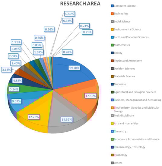 • The identification of specific keywords and research areas (computer science, engineering, environmental and among others) (Figure 2).