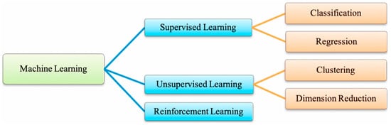 Murphy [23] proposes three main types of ML methods, namely supervised (predictive) learning to identify a mapping from outputs to inputs considering a specific set of input-outputs, unsupervised learning, where only the inputs are given, and reinforcement learning, which is less commonly used and explain how to perform with the occurrence of given occasional rewards (Figure 5).