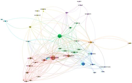 • An overview of the correlations of the existing works and studies of ML and urban fields to identify the number of citations per country (1.372 documents) (Figure 10).