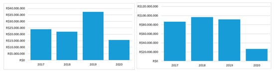 Budget of ICMBio and IBAMA for monitoring federal environmental protected areas—Paid budget from the 214P operation from ICMBio 214P-Environmental Inspection and protection of federal conservation units and Paid budget from the 214N operation from IBAMA 214N-Environmental control and inspection. Source: Artigo 19/ISA, s/d, using data from the “Portal do Orçamento”. Updated data from 2020, considering the present net values of 2017 and 2020.