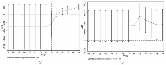 β was not significant in either mechanism before 2014, while it was significant overall in 2014 and afterwards. This indicates that the results of the regression passed the parallel trend test, i.e., the results of the baseline regression in