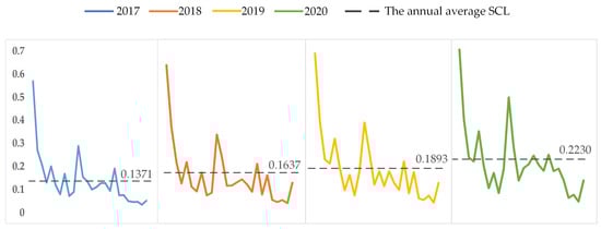 The trend of the SCL in the YRDUA from 2017 to 2020.