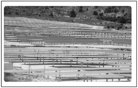 The competition for land derived from the transition to renewable energies is scientifically proven (a minimum of 2 hectares is necessary for each installed MW), and economically reasoned []. Solar energy generation seems to have become one of the most popular sources to achieve global carbon neutrality []. The expected production of solar energy in Spain would require approximately 0.65% of the national territory, estimating up to 22 million tons of emissions due to the change in land use []. Therefore, the regulation, planning, and implementation of the system must be conscientious in order to avoid a significant increase in its life cycle emissions through terrestrial carbon losses []. In addition, it is possible that the installation of photovoltaic plants on arable land irreversibly damages the soil []. Various studies consider that the development of these photovoltaic plant systems should only be implemented in degraded areas, less viable for agricultural use [], and should also be addressed locally from an intersectoral perspective [].
