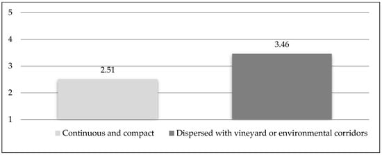 Regarding the distribution of the solar panels in the total surface to be occupied, it was preferred to be dispersed within vineyards or environmental corridors (3.46), rather than the continuous and compact proposal (2.51) (Figure 14).
