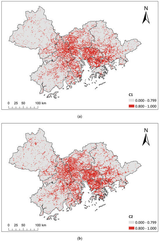 Regarding hospitality facilities, the GBA has now formed a spatial structure with a concentration of tourism facilities, industry enterprises, and talent employment [35,36,37]. Travel agents and accommodation services have a positive impact on the distribution of tourism services, as both can provide hospitality support and guidance for tourism services. They can provide tourists with convenient access to dining, leisure, shopping, and attractions, and this convenience can lead to the aggregation of tourism services [34,38]. In sum, we identify GDP, transportation, and hospitality facilities in a grid of 1 km2 as three important drivers for the distribution of tourism services. Because of the limitation of data sources, other factors which were not included in this paper, such as the GDP of the service industry and the number of visitors, may also influence the distribution of tourism services. Future research can use more comprehensive variables to examine the factors influencing the distribution of tourism services.
