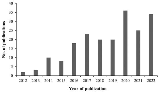 The results presented in this review are derived from two databases, and details are provided in the Supplementary Materials. The 199 publications included in this review were published within the last decade, and none were found prior to 2012 (Figure 1). Following this study, the results are presented in four key aspects, addressing the research questions and constructing a knowledge map. These aspects encompass the geographic distribution, the habitats/ecosystems of NP, the types of CES assessed, and the evaluation methods employed in the studies.
