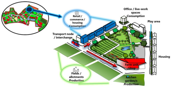 These schemes embody broader ambitions to ‘re-localize’ food systems, reduce a reliance on expensive fruit and vegetables, and create productive urban/peri-urban landscapes, linking food production with other regional infrastructure [14]. This includes a recognition of the everyday nature of hedged fields and communal growing spaces; these are then used to structure plot design and street layout. Such an intervention is often designed to tackle issues around perceived food deserts, reconnecting urban residents with produce in a more meaningful manner. Inevitably, these developments raise the spectre of low-density, unsustainable expansive suburbs designed around human liveability, capital accumulation and the desires of narrowly defined socio-economic groups. Without a shared, implementable vision to bind together relevant stakeholders and supportive planning instruments [14,32], these schemes may offer an artificial version of a healthy, farm-fresh lifestyle, permitting highly managed, commodifiable human–nature exchanges. Yet evidence provided from developers, farmers, planners and local residents suggests that well-designed and actionable models of equitable agricultural production can succeed in improving residents’ health, creating important sites based on social and ecological exchange among diverse communities [30].
