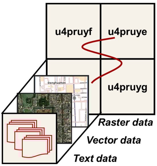 Based on the above steps, the vector data, the raster data, and the text data will be mapped into the grid system according to the grid scale of each level (as shown in Figure 4).