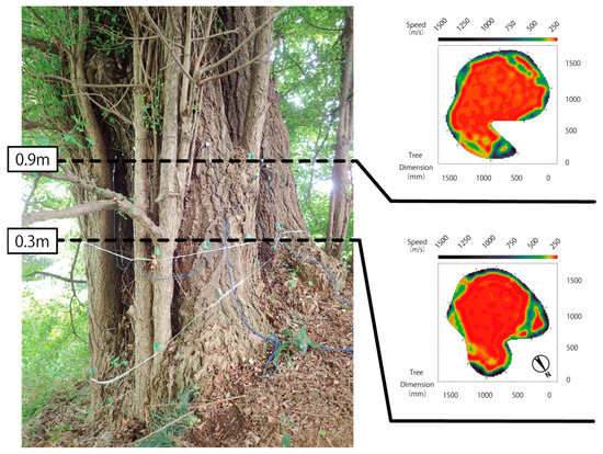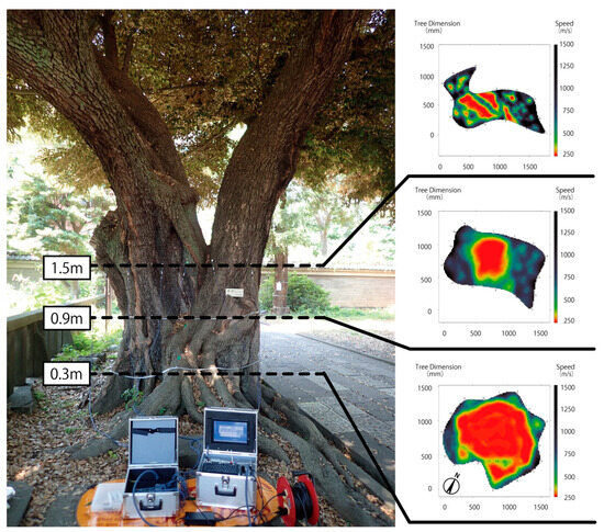 - Negishi, T.; Kanno, H. Nondestructive decay diagnosis of war-damaged trees by sonic tomography. J. Jpn. Inst. Landsc. Archit. 2022, 85, 433–438. [Google Scholar] [CrossRef]