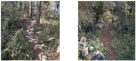 - Siafali, E. Technical Specifications of Trails in Mountainous Forests and Forest Lands. Master’s Thesis, Aristotle University of Thessaloniki, Thessaloniki, Greece, 2016. (In Greek). [Google Scholar]