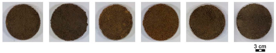 Since the investigated area is about 20,000 m2, six soil collection points were chosen to be investigated according to regulatory suggestions [36]. Six samples of soil (topsoil), mostly medium-coarse sand (Figure 3), were collected from different locations on the farm. Three samples were collected inside each greenhouse of the farm, while three samples were taken in the external area. Soil sampling was performed by coning and quartering. Following sampling, the adopted hyperspectral equipment was used to acquire the soils in Petri dishes (100 mm × 15 mm) in order to build the model training set.