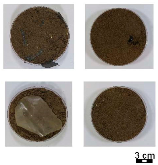 Finally, four random samples of soil contaminated by plastics were collected and acquired (Figure 4) to obtain the validation images for the classification purpose. The contaminant samples were collected from the end-of-life plastic storage and accumulation area, exposed to the action of atmospheric agents. In more detail, this second set of samples was used to evaluate the classification model performance.
