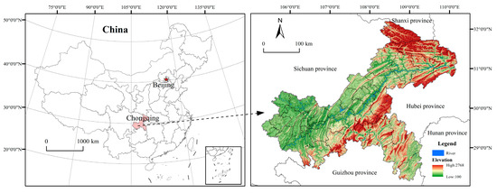 Chongqing is situated on the upper reaches of the Yangtze River. It covers 82,400 km2, consisting of 38 districts and counties, including 1031 townships. As of 2022, Chongqing has an approximate population of 32.12 million, with an urbanization rate of 70.96%. As shown in Figure 2, chongqing’s topography is primarily composed of hills and mountains, with mountains making up 76% of the region. The terrain gradually decreases from the south and north to the Yangtze River Valley, and Chongqing experiences a subtropical humid monsoon climate. Positioned at the intersection of the “Belt and Road” initiative and the Yangtze River Economic Belt, Chongqing plays a distinctive and vital role in the nation’s regional development and opening-up strategy. Nevertheless, there are notable disparities in the development of various regions within Chongqing concerning natural resource distribution, geographical location, and socio-economic conditions. Consequently, this has led to significant conflicts among the PLES, for which immediate actions are required to promote balanced and sustainable development in this region.