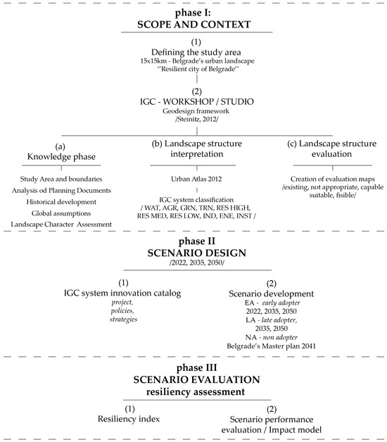 Phase 1: Scope and Context follow the (1) definition of the study area and (2) organization and implementation of the IGC workshop. The workshop follows the steps (current state evaluation) and subphases such as (a) knowledge building phase (process model); (b) landscape structure interpretation (representation model); and (c) landscape structure evaluation (an evaluation model that is a critical review of the current landscape structure).