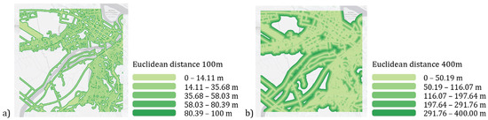 Metrics parameter: ENN—(a) Euclidean distance 100 m; (b) Euclidean distance 400 m.