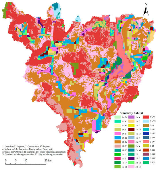 Division results of the similarity habitat method in Zhaoping County.
