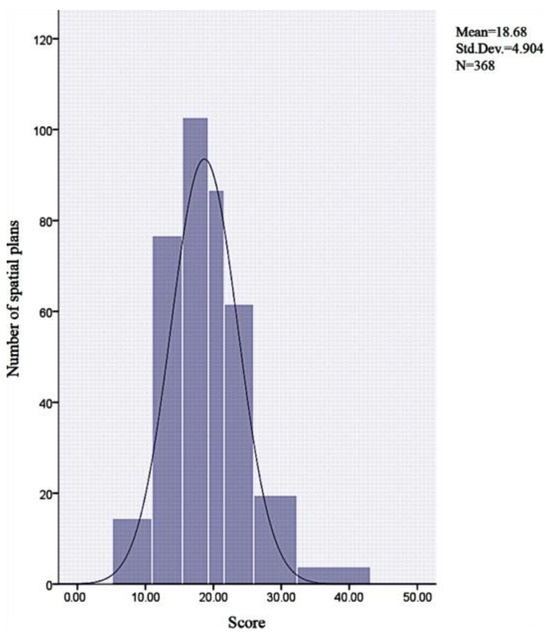 Frequency distribution of evaluation scores for individual territorial and spatial plans.