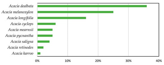 - Correia, R.; Quintela, J.; Duarte, M.P.; Gonçalves, M. Insights for the Valorization of Biomass from Portuguese Invasive Acacia spp. in a Biorefinery Perspective. Forests 2020, 11, 1342. [Google Scholar] [CrossRef]