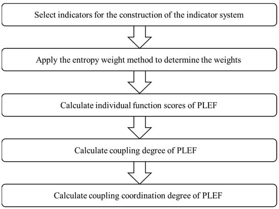 In order to further study the specific coupling and coordination relationship among PLEF, the coupling coordination degree was chosen for analysis in this paper. The coupling coordination degree was calculated as follows:
