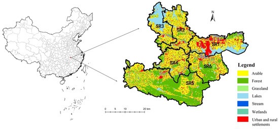 - Guo, X.; Fang, C. Integrated Land Use Change Related Carbon Source/Sink Examination in Jiangsu Province. Land 2021, 10, 1310. [Google Scholar] [CrossRef]