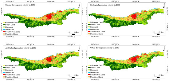 3.3. Land Use Structure Simulation under Four Scenarios in 2030