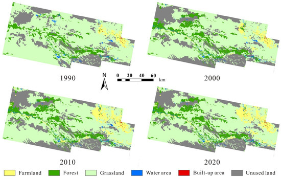 Specifically, the widely used random forest algorithm was applied to the timeseries Landsat remote sensing images for supervised classification. In our research, both the training and testing samples for LULC classification were obtained from the remote sensing images using the China multi-period land use and land cover (CNLUCC) data from the Chinese Academy of Sciences and high-resolution Google Earth Pro images as reference sources. Firstly, all of the samples (5000 samples for each year) were selected from the CNLUCC data according to a stratified random sampling method. Secondly, we carefully corrected the misclassified samples with the support of Google Earth Pro images. Thirdly, the corrected samples were randomly classified as training (80%) and testing sub-datasets (20%). Finally, the LULC datasets from 1990, 2000, 2010, and 2020 could be obtained based on the above methodological framework. The performance of the remote sensing classification was validated according to the overall accuracies. The overall accuracies of the LULC datasets from 1990, 2000, 2010, and 2020 were found to be 92.6%, 94.7%, 92.2%, and 95.1%, respectively. The above results demonstrate that the classified LULC datasets have high reliability, which can be further utilized for LULC change assessment, simulation, and prediction.