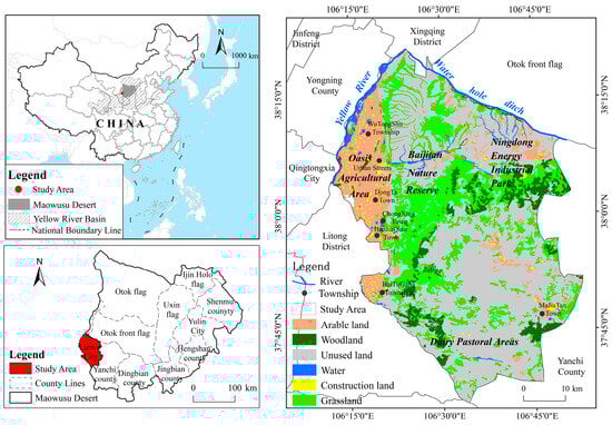 - Li, C.H.; Ma, C.H.; Hua, Y.Q.; Yang, H.; Liu, Y.Y. Response of ecosystem services in the upper Yellow River Oasis to land use change for the three industries: A case study of Yinchuan City. J. Resour. Sci. 2023, 45, 190–203. [Google Scholar]