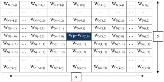 - “WN” denotes the weight assigned to each cell within the neighborhood, which depends on its distance from the cell under study.