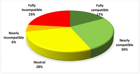- The effect radii for industrial and non-urban uses were systematically varied from 100 to 500 m in 100 m intervals to assess the impacts on proximal residential area compatibility. As the radii were increased, more residential areas shifted from completely compatible to relatively or completely incompatible in the model outputs, affirming the technique’s ability to realistically capture extended impact zones.