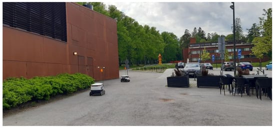 Nevertheless, interest in urban data is growing outside the statutory planning processes. There are new mobility applications and services which are using location-based data. Public transportation has used and developed location-based data for routing since the 1990s. AI and robotics are extending the use of location-based data by introducing visualisations of CIM and BIM, not just to navigate, but to identify and deliver goods and orders to the receivers. In Otaniemi, there has been experimentation with delivery robots. Small vehicles use pavements and footpaths instead of streets and driveways (Figure 4). Thus, shopping that normally is done by people in local shops has turned into a delivery service. This kind of service is expected to assist the elderly and people with walking difficulties. E-shopping might likely change the commercial infrastructure even in small city centres.