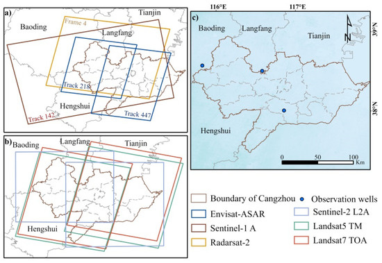 Therefore, we aimed to reveal the relationship between ground water level, land subsidence, and the response of winter wheat planting area in Cangzhou. In this study, the long-time series deformation characteristics of Cangzhou were obtained from Envisat-ASAR, Radarsat-2, and Sentinel-1A data using SBAS-IPTA technology. The content of this paper is as follows: Section 2 provides an overview of the geological background and research data of Cangzhou. Section 3 introduces the research methods used in this study. Section 4 includes the analysis of the temporal and spatial evolution characteristics of the land subsidence. Finally, in Section 5, we discuss the relationship between ground water level, land subsidence, and the response of winter wheat planting area in Cangzhou. The conclusion of this paper is finally presented in Section 6.