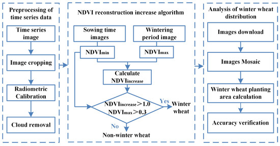 Flowcharts of how winter wheat planting distribution was extracted using the PIE-Engine.