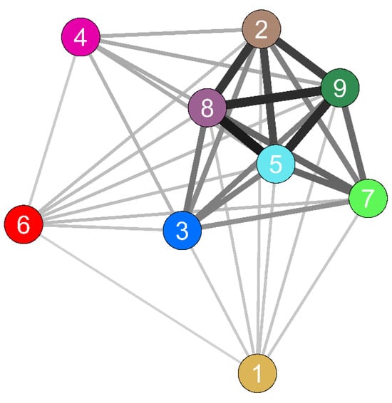 - Epskamp, S.; Cramer, A.O.J.; Waldorp, L.J.; Schmittmann, V.D.; Borsboom, D. qgraph: Network Visualizations of Relationships in Psychometric Data. J. Stat. Softw. 2012, 48, 1–18. [Google Scholar] [CrossRef]