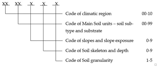 Value soil ecological units (VSEU), basic spatial units, were the elements of the se-lected set (Figure 3). They can be considered relatively homogenous from the point of view of abiotic properties. It is also possible to derive other basic characteristics of soil and landscape from the VSEU, such as climatic region, soil type, soil-forming substrate, inclination and exposure of the slope, depth and skeleton of the soil and the sort of soil [40].