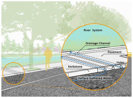 The two problems above would affect the sustainable development for lakeside cities, and how to solve the problems represents the tasks and difficulties faced by urban planners and relevant decision-makers. It will consume huge costs for the first problem in upgrading the pipe network and building grey infrastructure such as reservoirs, which are far more than the economic losses caused by urban waterlogging [6,7]. In high-density cities, such large-scale construction activities and spaces are not allowed, more often than not, on account of the limitation of construction space [8]. For the phenomenon of the backwater effects of lake water in the second problem, urban rainwater cannot be solved just with an urban drainage pipe network [9]. At present, the commonly used method is to discharge with a pump, but the limitation of the pump’s own power may lead to too long a time for relieving waterlogging, with the possibility that the pump will stop running as a failure.