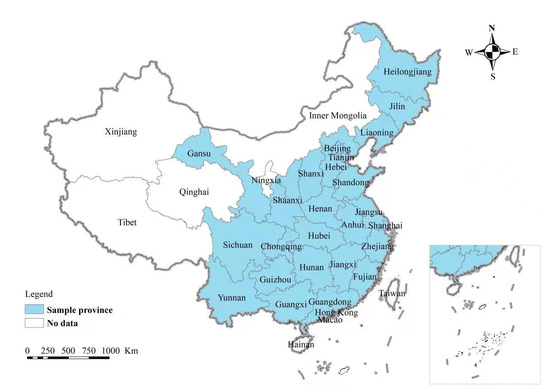 The spatial distribution of sample provinces.