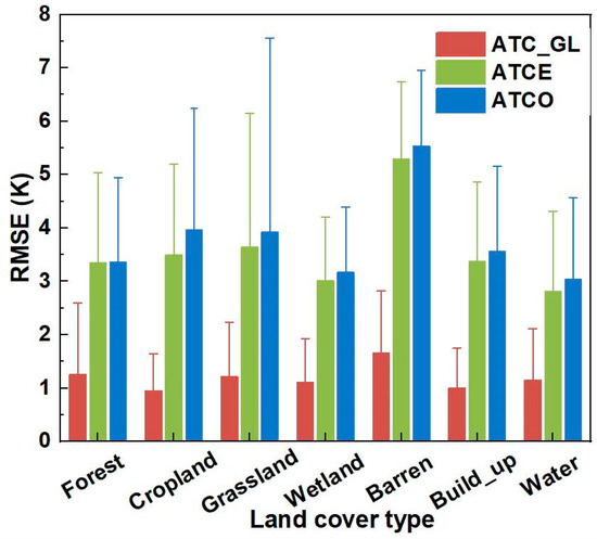 The RMSEs of the ATC_GL, ATCE, and ATCO according to land cover type.