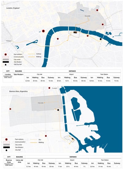 The two case studies selected (see Table 1) are the Tate Modern, the former Bankside Power Station, which is located in London and was built in 1952 and re-functionalised in 2001, while the other one is the Usina del Arte, the former Don Pedro de Mendoza Power Plant, which is located in the city of Buenos Aires and was built in 1916 and re-functionalised in 2011 (see Figure 2).