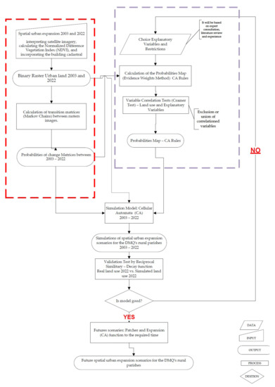 Figure 5 shows the general flow of all phases of the calculation of spatial urban expansion scenarios for the rural parishes of the DMQ.